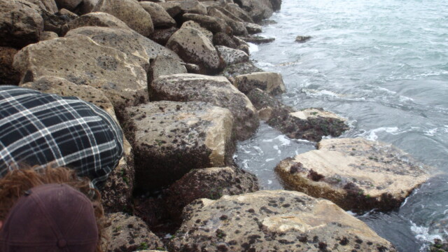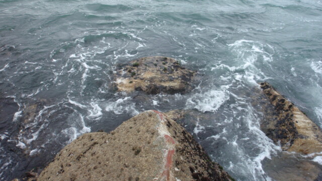 The waves were smaller than me, maybe only 1.30 m or even less, but they were quite powerful and tried to throw us higher on the rocks with each wave. Till we hit bottom. That is, actually, not a flat bottom but several rocks of roughly the same height.